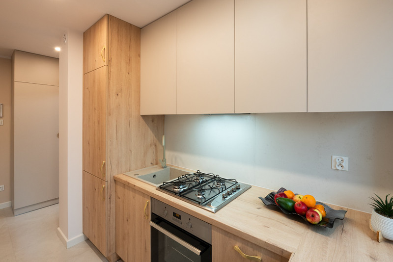 • Kuchni z pełnym wyposażeniem AGD (lodówka, zmywarka, okap, płyta gazowa, piekarnik) oraz zabudową stolarską wykonaną przez doświadczonego stolarza z myślą o ergonomii.