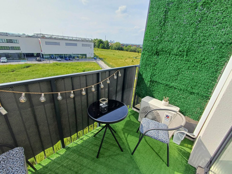Dużym atutem jest zachodnia ekspozycja, dzięki której mieszkanie jest dobrze doświetlone przez większość dnia. Z balkonu można podziwiać zachody słońca. Balkon wychodzi na teren szkoły, co zapewnia poczucie przestrzeni oraz brak ryzyka przyszłej zabudowy - widok pozostanie otwarty.