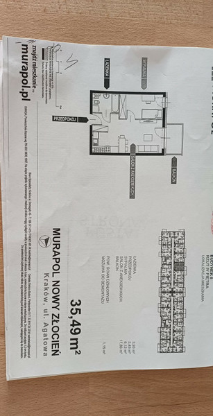 Na sprzedaż funkcjonalne i jasne mieszkanie o powierzchni 35,49 m², położone na 4. (ostatnim) piętrze nowoczesnego budynku z windą - inwestycja Murapol Nowy Złocień, ul. Mariana Domagały w Krakowie.