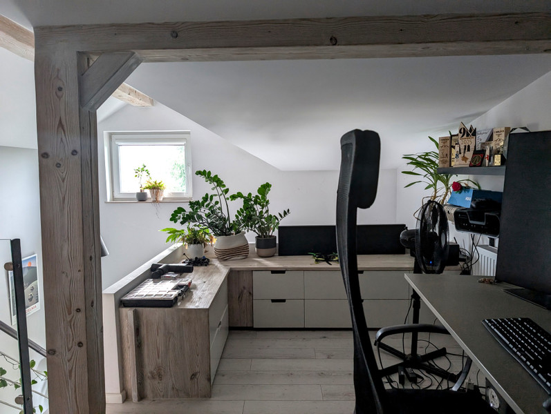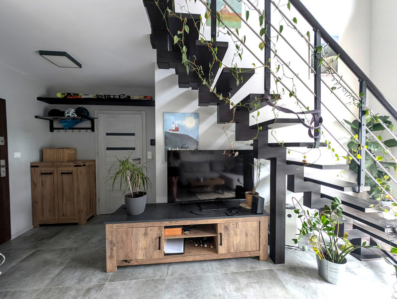 • Układ: 3 pokoje, dwupoziomowe: łazienka, sypialnia, salon z aneksem kuchennym, antresola, pokój