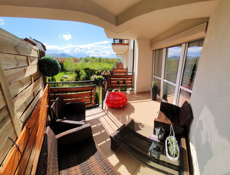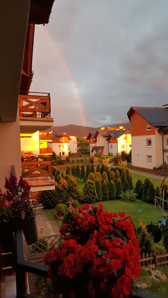 7/ zadaszony balkon z widokiem na ogrody i plac zabaw. Dzięki ekspozycji południowej nadaje się do zawieszenia lekkich paneli fotowoltaicznych i magazynowania energii.
