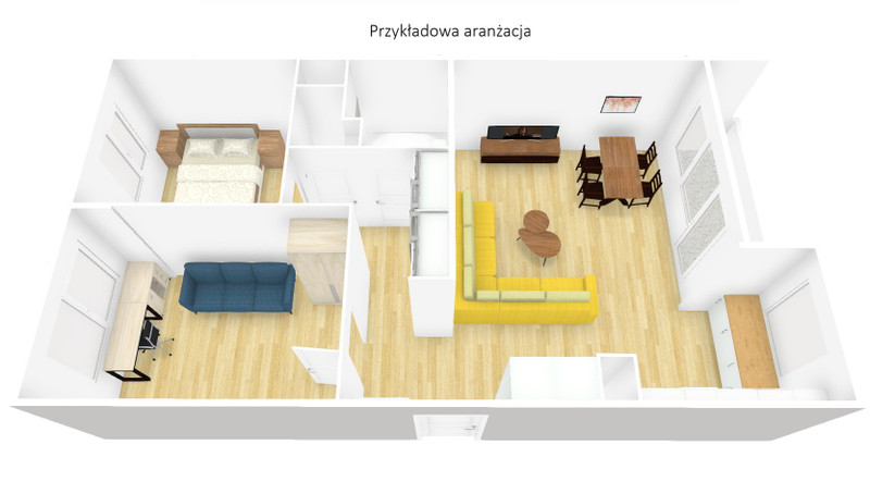 Układ: funkcjonalny i praktyczny — każdy pokój niezależny + osobna kuchnia.