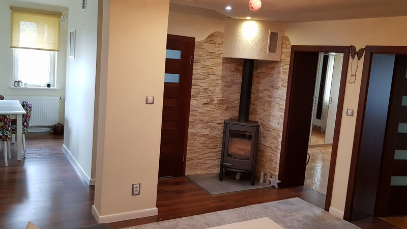 Ogrzewanie: C.O. i źródło ciepłej wody – kocioł gazowy 2 funkcyjny Wolf z zamkniętą komorą spalania, dodatkowo kominek.