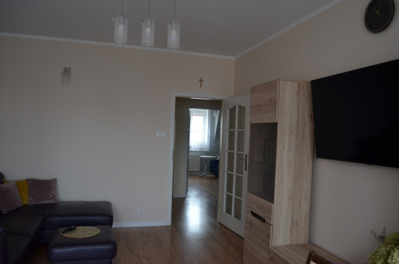 Lokal składa się z trzech niezależnych pokoi, osobnej kuchni, łazienki oraz przedpokoju. Do mieszkania przynależy piwnica o powierzchni 4,76 m². Dodatkowym atutem jest klimatyzacja oraz praktyczne szafy w zabudowie typu komandor w przedpokoju i sypialni.