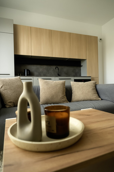Mieszkanie zostało teraz w całości odnowione i zaprojektowane w spójnym, eleganckim stylu. Jasne wnętrza, naturalne materiały oraz dopracowane detale tworzą przestrzeń, w której od razu można poczuć się jak u siebie.