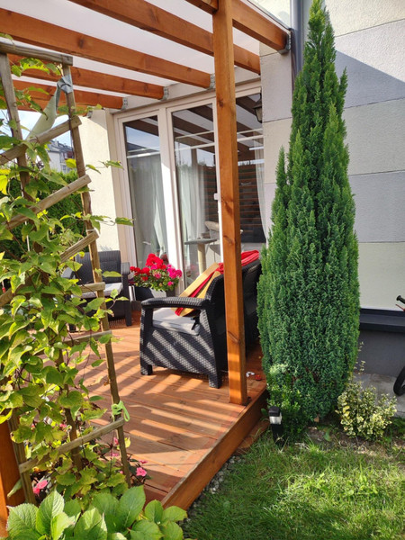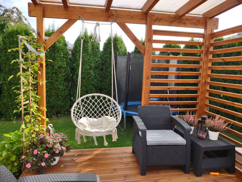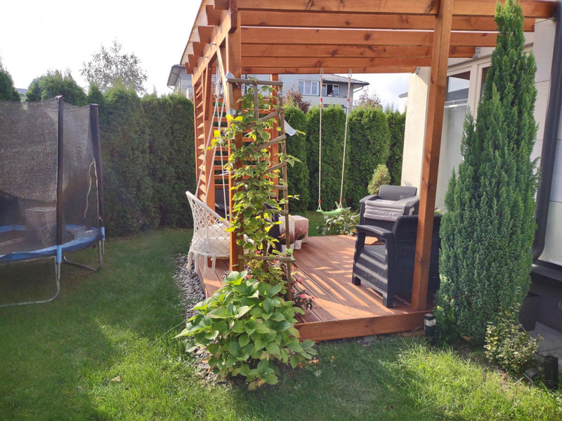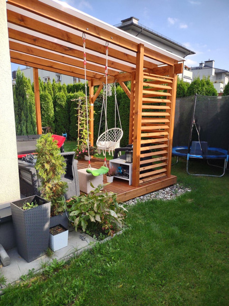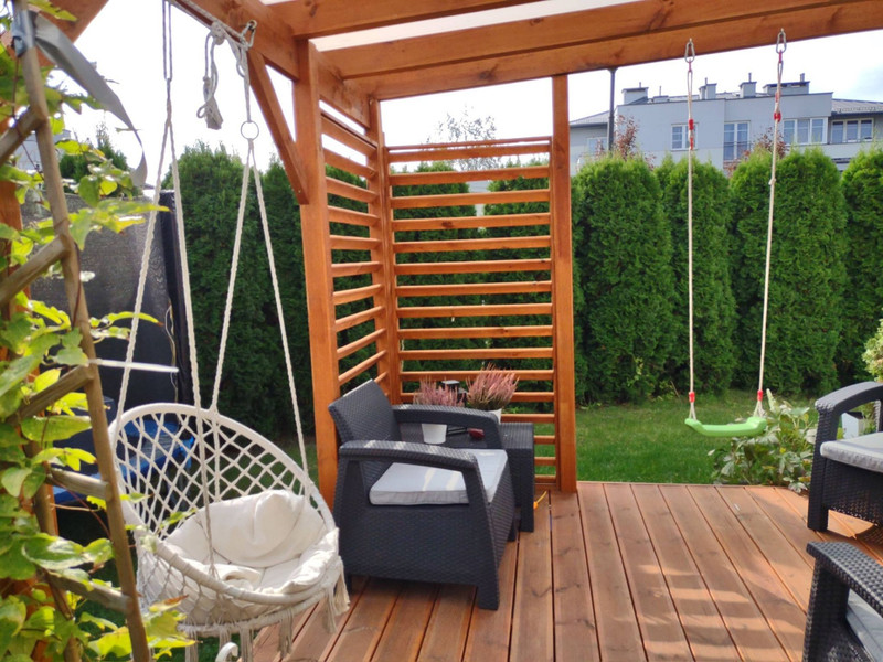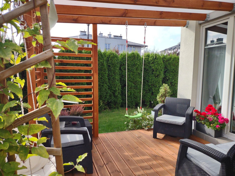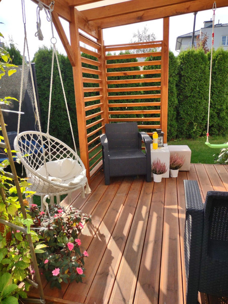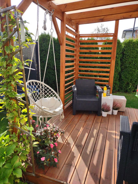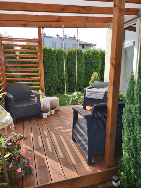 Kiedy tylko zaczyna robić się ciepło – taras zamienia się w strefę relaksu – leżak, dwie huśtawki (hamaki), otaczająca zieleń i cisza sprawiają, że naprawdę można na nim odpocząć po całym dniu - lub nabrać energii rano przed pracą - z kubkiem kawy lub herbaty w ręku posłuchać śpiewu ptaków. Ogród ma 130 metrów, jest przytulny i intymny, oddzielony tujami od części wspólnych osiedla.