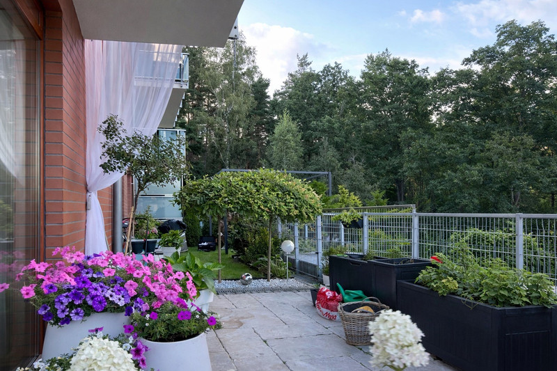 Nieruchomość wyróżnia się przemyślanym układem pomieszczeń oraz przestronnym tarasem o powierzchni aż 50 m², z czego 20 m² stanowi prywatny trawnik z widokiem na las.