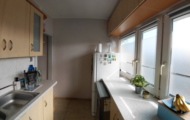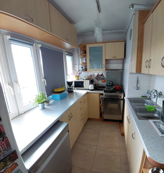 – na podłogach panele w dobrym stanie; w kuchni, łazience i przedpokoju płytki; ściany gładkie