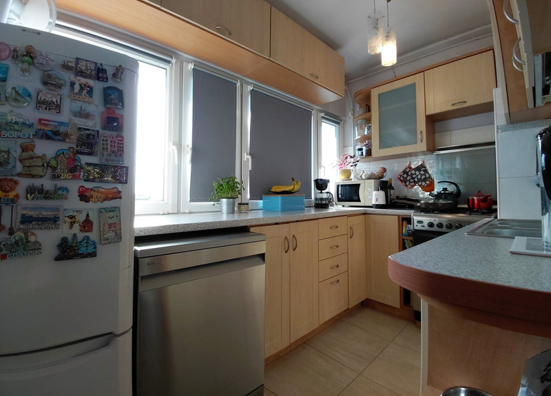 – kuchni wyposażona w zabudowę meblową, dużo miejsca do przechowywania, sprzętem AGD taki jak zmywarka, piecyk gazowy, lodówka