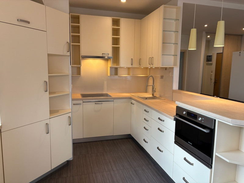 Kuchnia - 8m2: gres podłoga i część ścian, meble kuchenne w zabudowie, zlewozmywak , płyta indukcyjna Samsung, duża lodówka NoFrost z 3 szufladową zamrażarką Teka, piekarnik z funkcją mikrofali Samsung, zmywarka 60 Elektrolux , okap podłączony do komina wentylacyjnego.