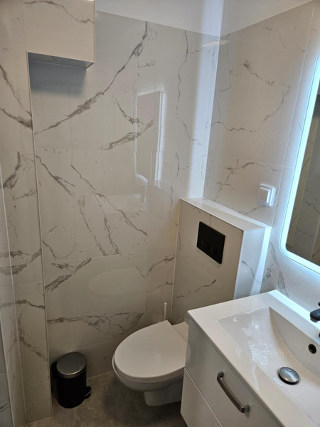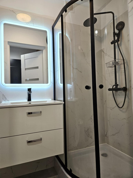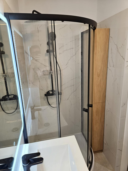 • Łazienka: WC z zabudową geberit, szafka na wymiar, prysznic 90