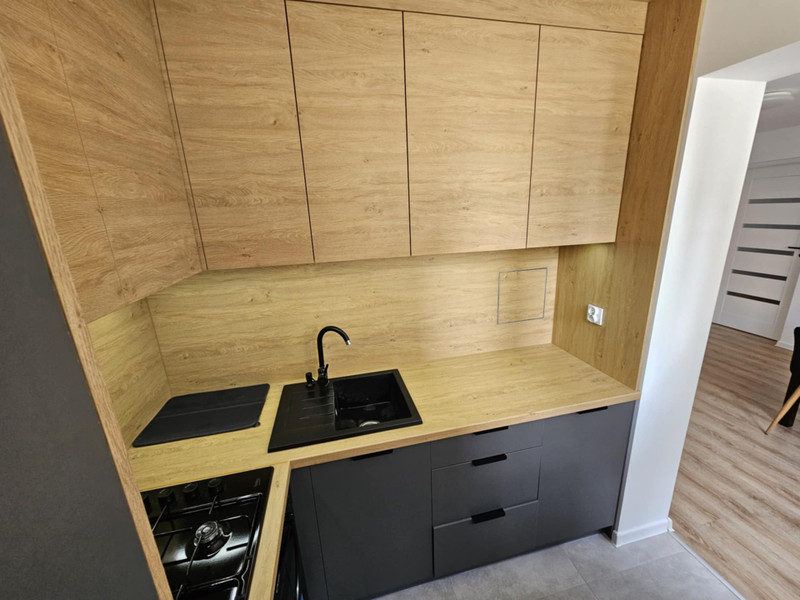 • Kuchnia: meble na wymiar z oświetleniem LED pod szafkami i okapem, piekarnik marki Candy, zabudowana lodówka Samsung (jeszcze na gwarancji), miejsce przygotowane pod zmywarkę.