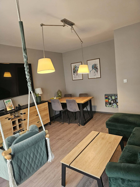 Mieszkanie mieści się w nowoczesnym budynku (2014), na zamkniętym osiedlu z ochroną i monitoringiem. Dodatkowo na terenie osiedla znajduje się duży plac zabaw i miejscem do grillowania oraz boisko do gry w koszykówkę i piłkę nożną. Zielone patio zaopiekowane przez profesjonalną firmę ogrodniczą jest dodatkowym atutem.