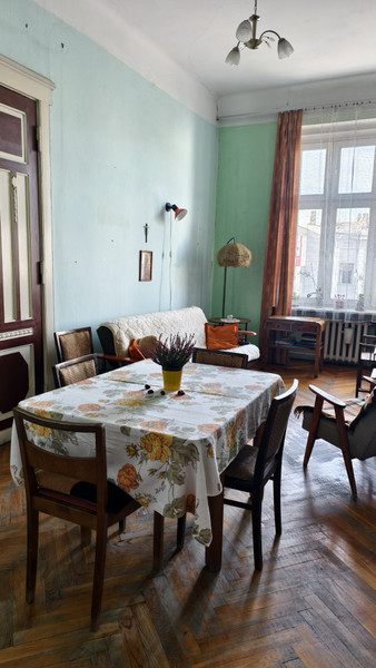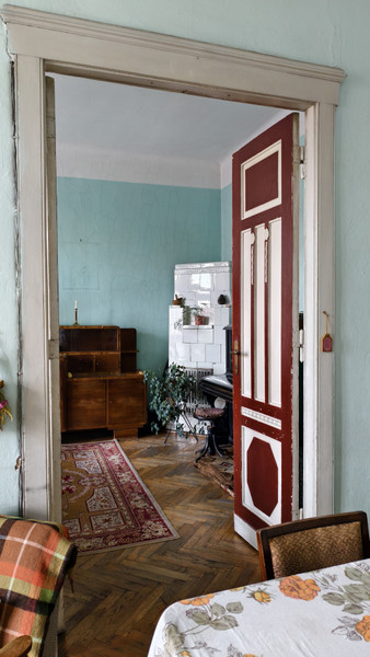 Oryginalna stolarka drzwiowa we wszystkich pokojach oraz parkiet.