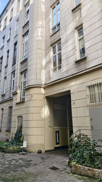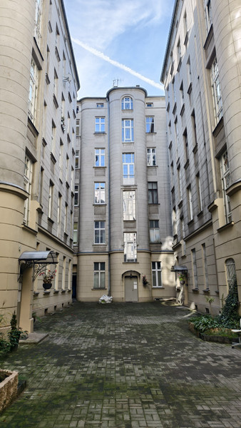 Budynek zachwyca odnowioną elewacją frontową, świeżo wyremontowaną bramą wjazdową prowadzącą na zadbane podwórze, a także zabytkową klatką schodową.