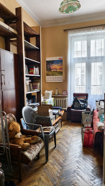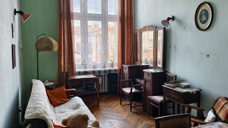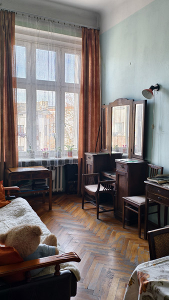 • trzech pokoi dziennych (12 m2, 17 m2 i 21 m2) - okna wymienione w dwóch pokojach, oryginalne pozostały w pokoju z balkonem