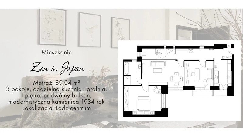 To ogłoszenie nie jest stworzone by namówić Cię do spotkania na prezentację. Ono jest po to, żeby sprawdzić, czy to mieszkanie jest dla Ciebie. Wyobraź sobie, że wracasz po południu do domu, przekraczasz kutą bramę kamienicy i wchodzisz na patio pełne zieleni, na którym wiosną i latem odbywa się koncert ptaków. Potem pokonujesz kilka schodków, zachwycając się za każdym razem biało czarną mozaiką, która zdobi półpiętro Twojej klatki schodowej. Przywodzi ona na myśl eleganckie towarzystwo, stukot obcasów na klatce i gwar przedwojennej Łodzi. Po chwili zadumy, otwierasz drzwi i wkraczasz do swojej oazy. Bez względu na to jaki masz dzień, zawsze po wejściu do Zen, czujesz to samo. Czujesz przestrzeń, która koi zmysły oraz porządkuje myśli.