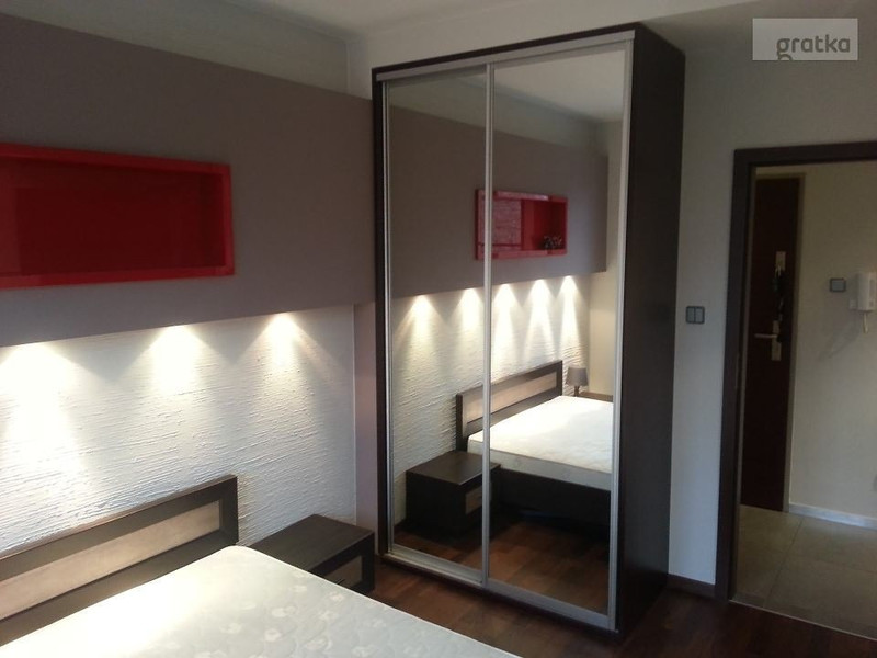 Sypialnia została wyposażona w podwójne łóżko z materacem, pakowną szafę oraz TV. Łazienka z prysznicem/wanną, WC i umywalką. Dodatkowo mieszkanie posiada balkon z widokiem na park.