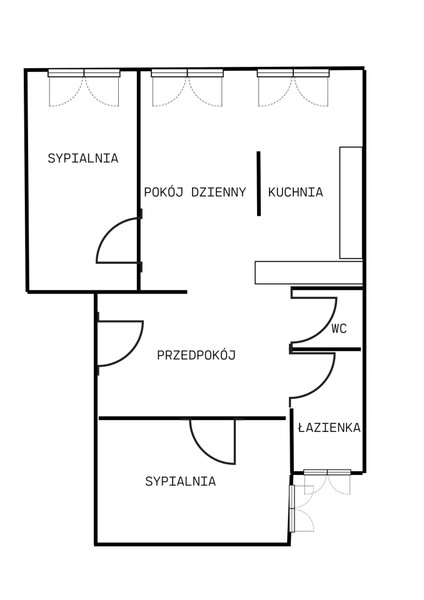 W mieszkaniu znajdują się 3 pokoje - pokój dzienny z jadalnią i dwie sypialnie, mała toaleta oraz łazienka wyposażona w prysznic, wannę, umywalkę i WC. Dodatkowo w mieszkaniu znajduje się antresola nad kuchnią.