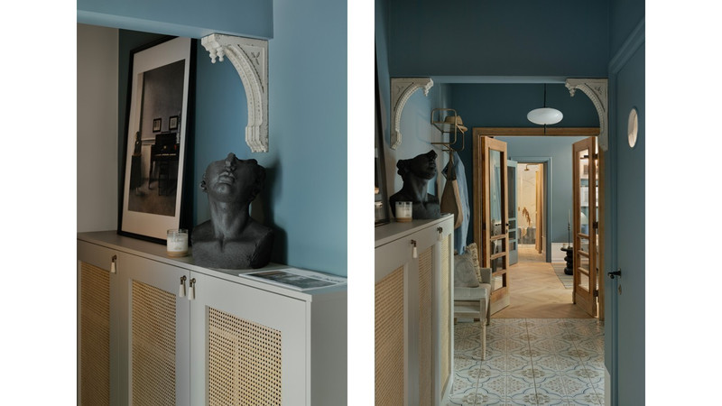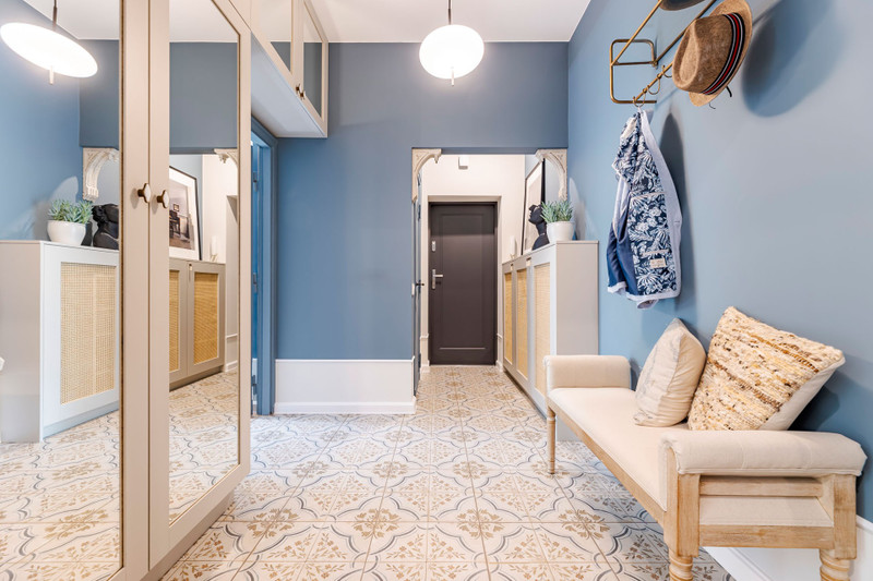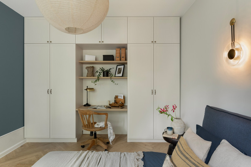 Mieszkanie Blue Velvet to nie tylko 3 pokoje, łazienka, wc i przedpokój. To charakter, dusza, ciepło, historia i nowoczesność. Wnętrze charakteryzuje się wyjątkowym układem przestrzennym, który przywodzi na myśl dawne czasy. Do mieszkania prowadzi obszerny hol z pięknymi hiszpańskimi płytkami na podłodze, szafami, siedziskiem. Salon poza strefą wypoczynkową z szalenie wygodną lnianą sofą, klimatyczną witryną z książkami, oferuje strefę jadalnianą i aneks kuchenny z drewnianą wyspą. Sypialnia to wygodne królestwo, z łóżkiem wykonanym na zamówienie, obszernymi szafami i miejscem do pracy. Gabinet zapewnia dodatkową przestrzeń do pracy i odpoczynku, a w razie potrzeby może zamienić się w pokój dla dziecka lub gości. Łazienka, cóż…to wyrafinowana elegancja z prysznicem za owalnym wejściem, w którym znajduje się wyłożona płytkami ławeczka. Oryginalna i odrestaurowana stolarka drzwiowa, piękne dodatki z całego świata, unikatowe oświetlenie, magia detalu. Poza estetyką możecie liczyć na ergonomiczne rozwiązania ułatwiające codzienne życie.