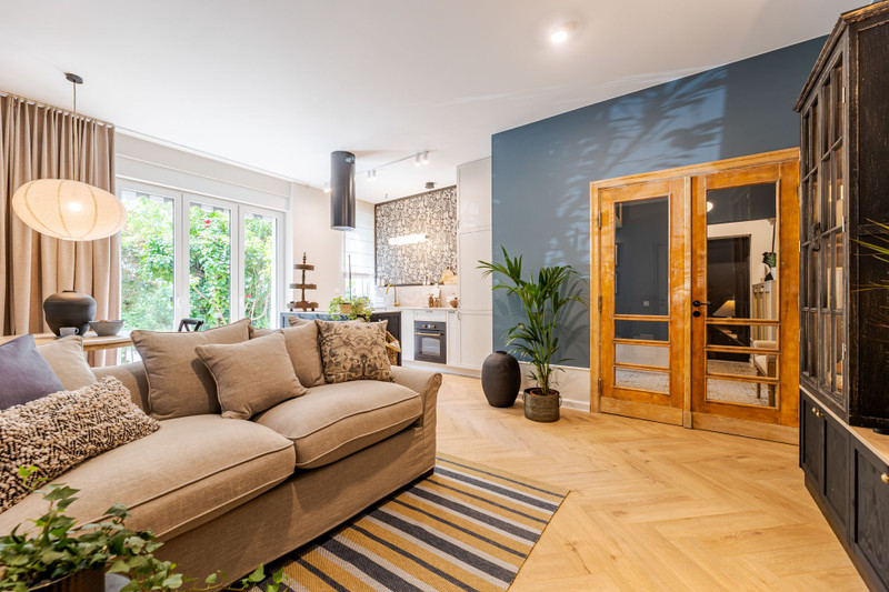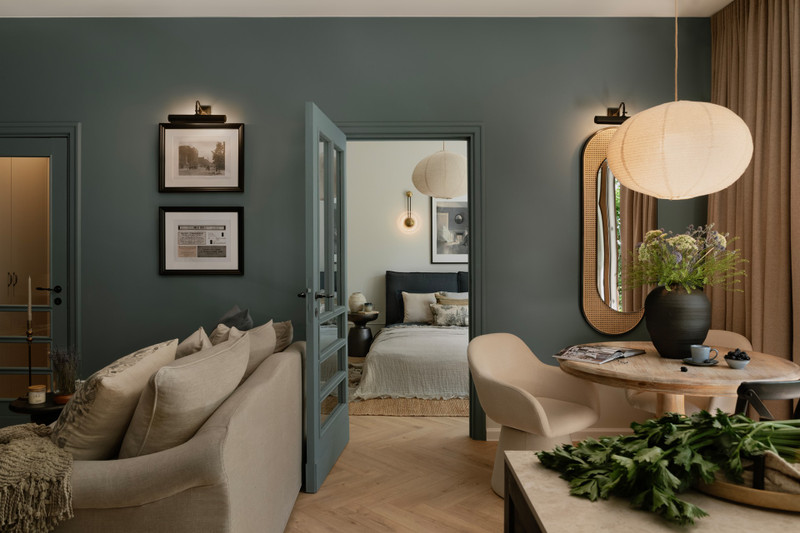 Do pokochania od pierwszego wejrzenia apartament BLUE VELVET o powierzchni 65,89 m2 z niezwykłym, skąpanym w zieleni tarasem. Gdybym napisała, że poza urzekającym wnętrzem znajduje się w fenomenalnej lokalizacji, w prestiżowej kamienicy, z mini parkiem przed oknami, w którym kosy dają codziennie bezpłatne koncerty, to czy uznalibyście to za możliwe? Jest takie mieszkanie i my je mamy. Świeżo wyremontowane, urządzone i wykończone na najwyższym poziomie realizacyjnym, z którego znane jest nasze Studio Lilla Home.