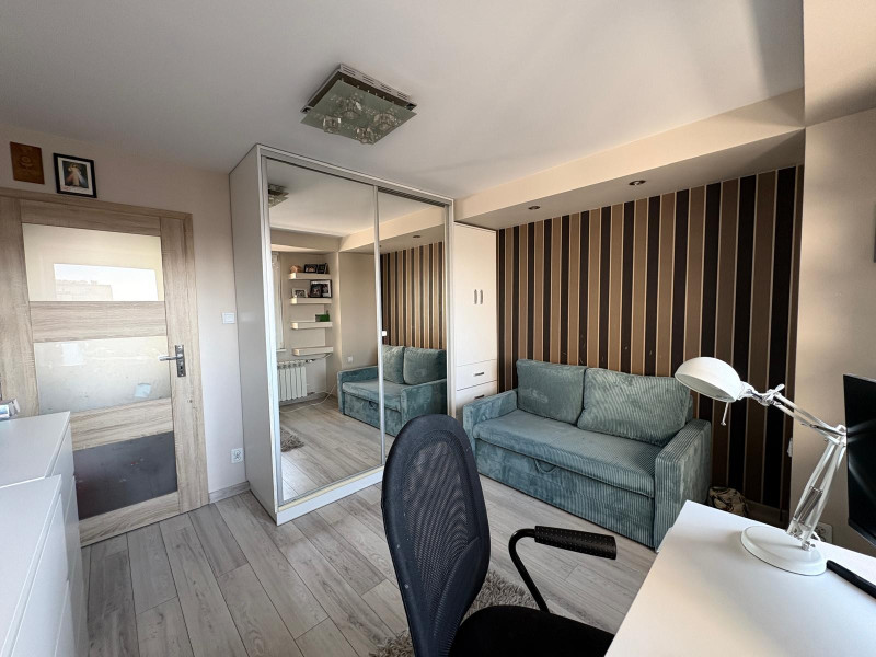 Mieszkanie po kapitalnym remoncie wraz z wymianą pełnej elektryki, hydrauliki. Mieszkanie posiada w pełni wyposażoną kuchnię — zmywarka, lodówka, piekarnik, mikrofala - wszystkie urządzenia w zabudowie oraz meble robione pod wymiar. W pokojach oraz przedpokoju znajdują się funkcjonalne pojemne szafy wykonane na wymiar, zapewniające dużo miejsca do przechowywania. Mieszkanie zabezpieczone antywłamaniowymi drzwiami i systemem alarmowym, który zapewnia bezpieczeństwo. Dobra funkcjonalność dla rodziny lub pod wynajem.