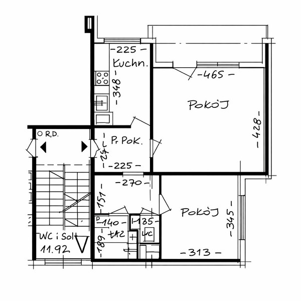 - Funkcjonalny układ – dwa niezależne pokoje. Osobna kuchnia z oknem, łazienka oraz przedpokój. Do każdego pomieszczenia prowadzi osobne wejście.