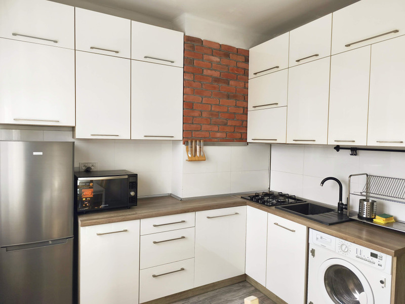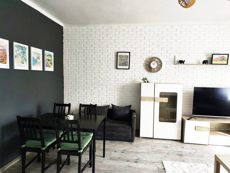 Mieszkanie jest wysokie, naprawdę fajnie urządzone, wszystkie potrzebne sprzęty na wyposażeniu, dużo miejsca do przechowywania. Do dyspozycji piwnica.