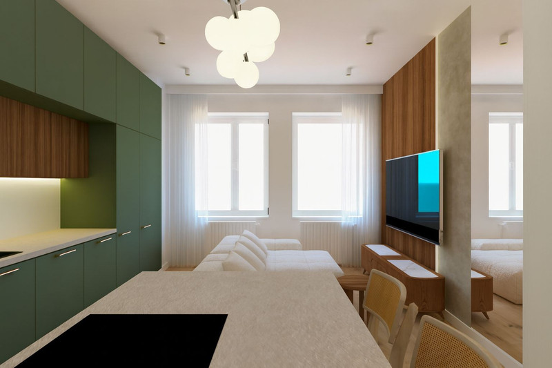 Mieszkanie idealne dla singla, pary lub jako inwestycja pod wynajem. Przemyślany rozkład zapewnia wygodę codziennego użytkowania, a dodatkowa garderoba oferuje dużą przestrzeń do przechowywania.