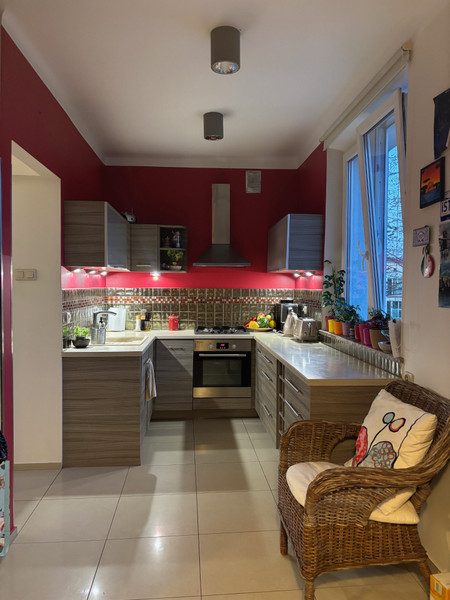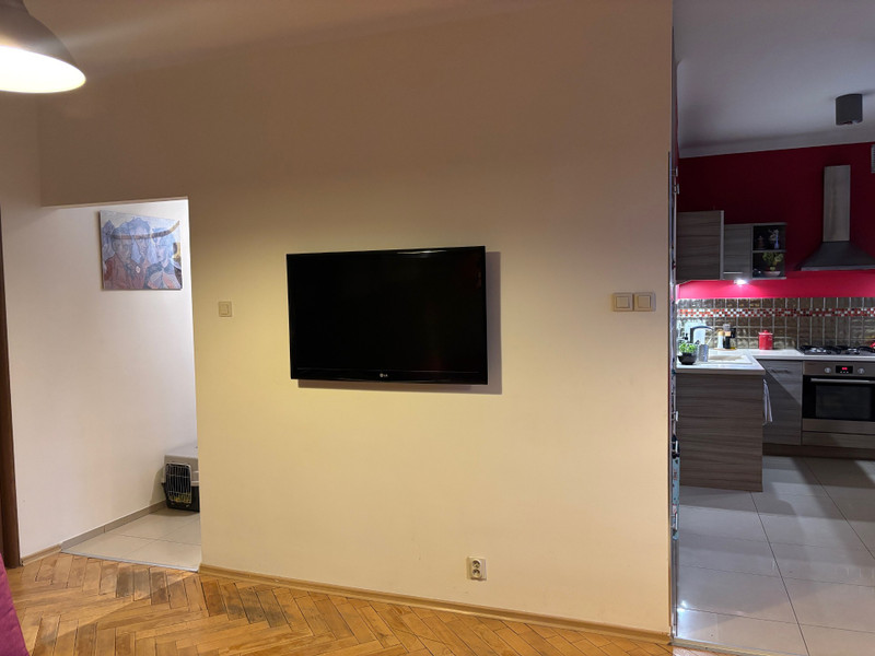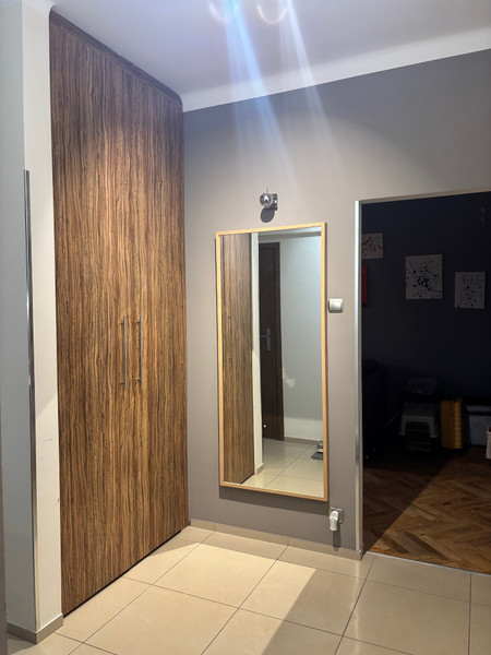 Ostatnie piętro, nikt nie hałasuje na górze. Na podłodze w kuchni i przedpokoju płytki, w salonie i sypialni parkiet.
