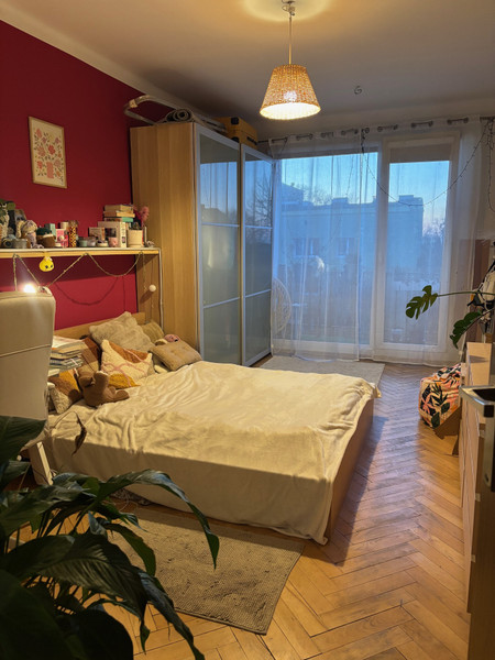 Mieszkanie wysokie i jasne. Duże okna, w sypialni balkon.