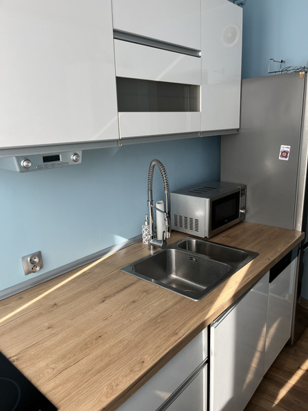 • Kuchnia w pełni umeblowana i wyposażona: lodówko-zamrażarka, zmywarka, płyta ceramiczna, piekarnik, mikrofalówka.