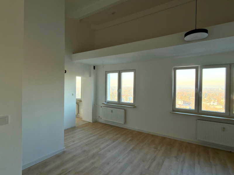 Największym atutem jest duża ilość naturalnego światła oraz otwarty widok. Dzięki położeniu na ostatnim piętrze mieszkanie jest bardzo jasne, a brak bezpośredniej zabudowy przed oknami daje poczucie przestrzeni i prywatności.