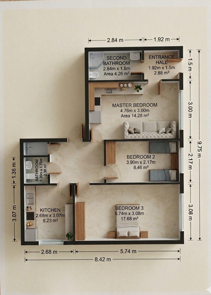 Mieszkanie składa się z salonu, dwóch sypialni, oddzielnej kuchni, łazienki, wc oraz przedpokoju. Układ pomieszczeń pozwala na nowoczesne rozwiązania - możesz stworzyć przestrzeń dokładnie taką, jaką sobie wymarzysz.