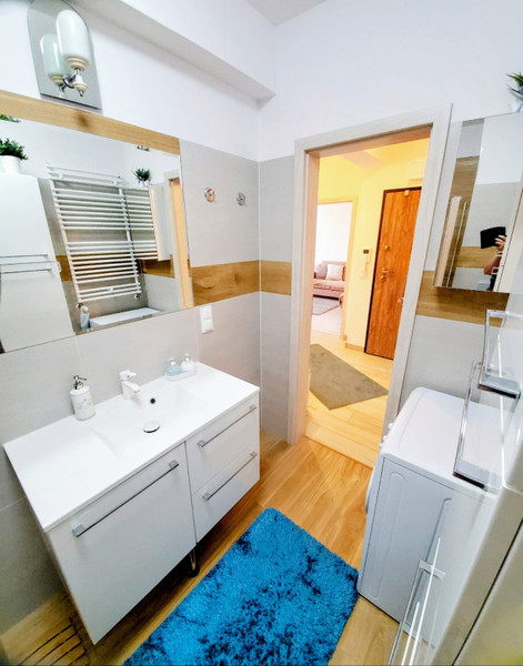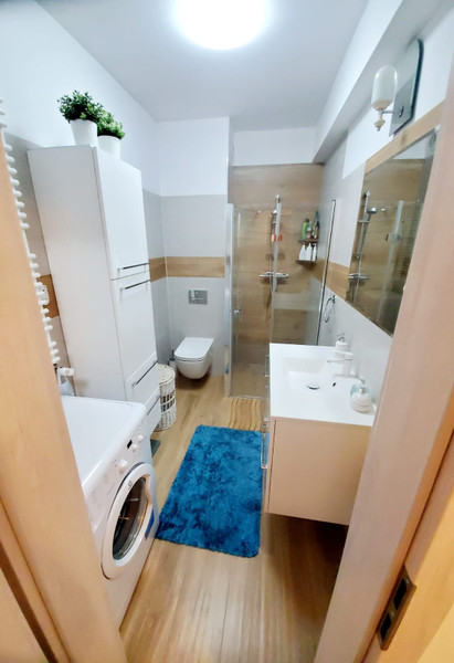 * nowoczesna łazienka z prysznicem i pralką