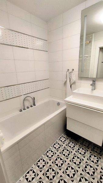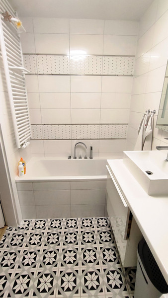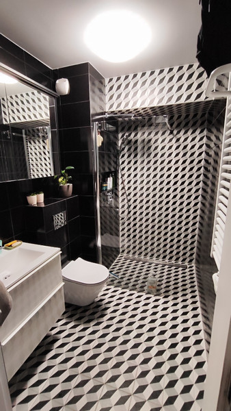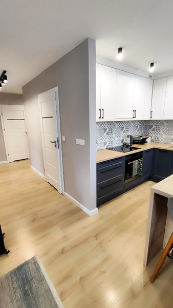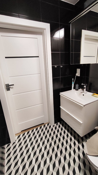 - Dwie łazienki. Salon z kuchnią, sypialnia i pokój dziecięcy.