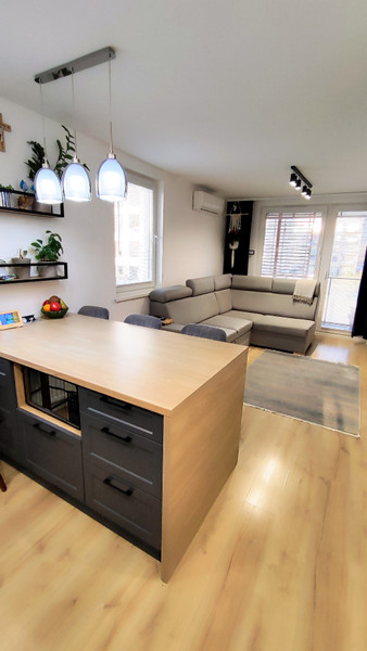 Mieszkanie – W pełni wyposażone, położone na pierwszym piętrze. Lokal jest umeblowany oraz wykończony z materiałów wysokiej jakości oraz wyposażone w sprzęt AGD. Dodatkowym atutem jest zamontowana klimatyzacja w salonie.