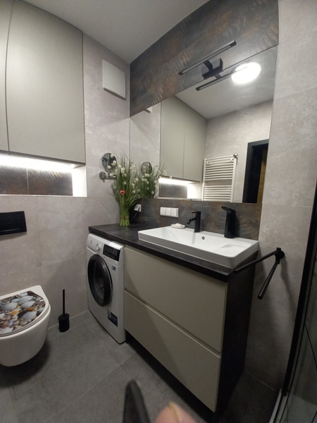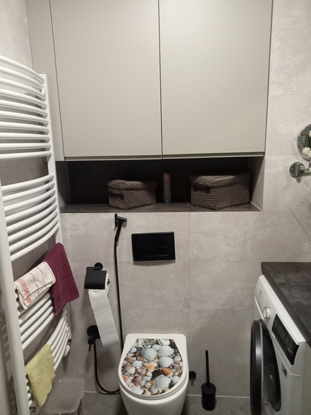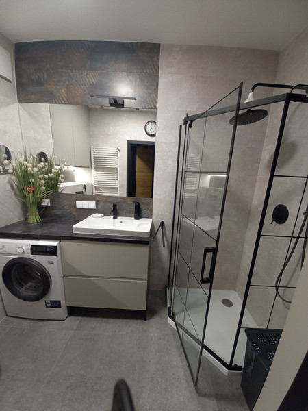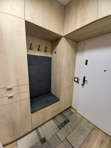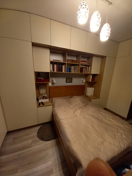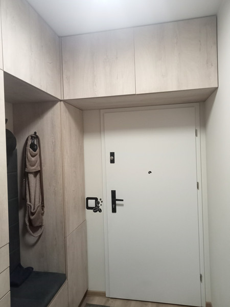 Na wyposażeniu mieszkania są meble w zabudowie na wymiar, w przedpokoju, łazience, sypialni i kuchni, oraz piekarnik, płyta indukcyjna, pralka, zmywarka, lodówko-zamrażarka i łoże małżeńskie.