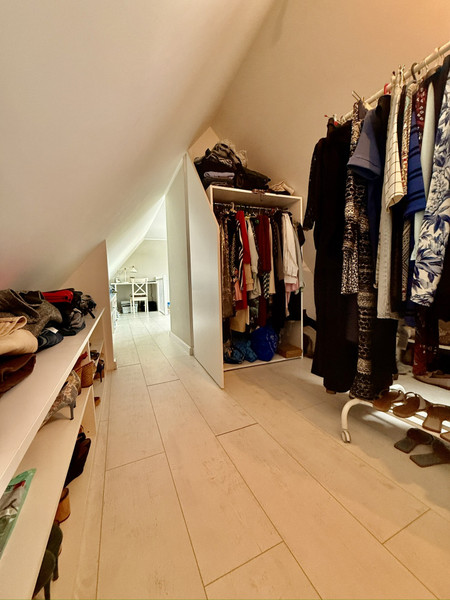 Na drugim poziomie (okna na zachód) znajduje się przestrzeń do zagospodarowania (np. na dodatkową sypialnię lub pracownię itp.) oraz druga garderoba.