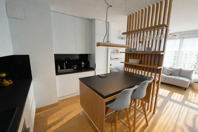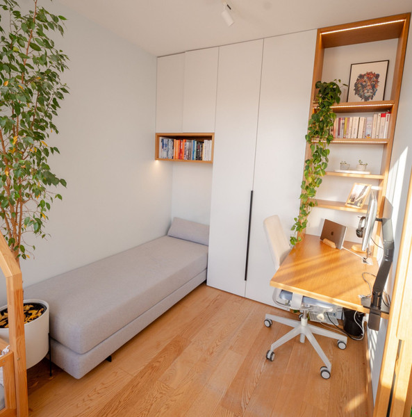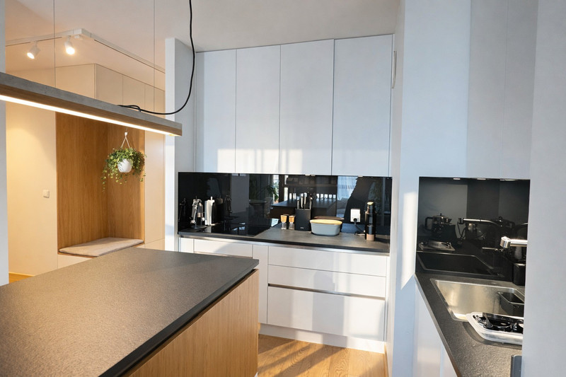 Mieszkanie zostało zakupione w stanie deweloperskim w 2020 roku i wykończone w 2021 roku według indywidualnego projektu renomowanego architekta.