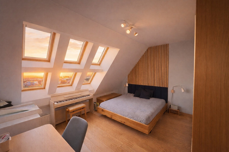 • okna dachowe z automatycznymi żaluzjami Velux – doskonale wyciszone