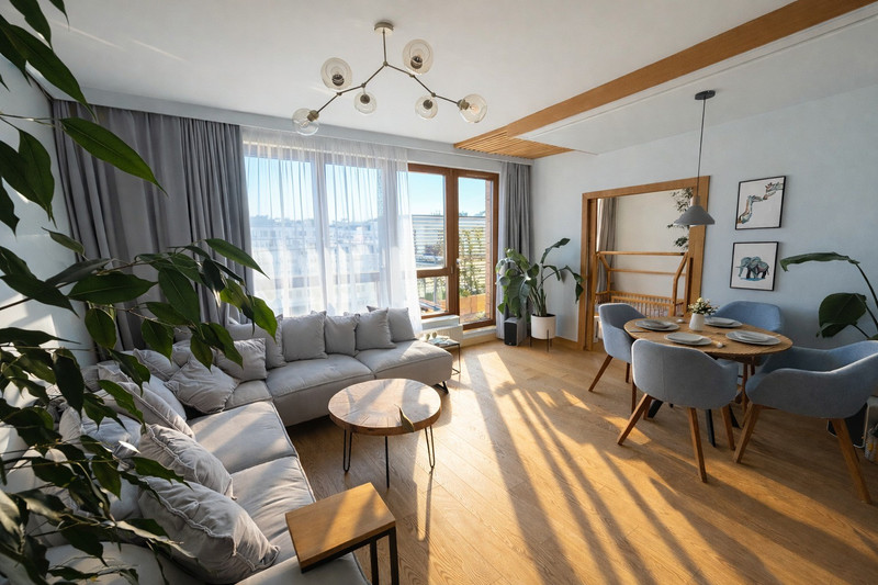 Mieszkanie sprzedawane jest z pełnym wyposażeniem wysokiej jakości – wszystko pozostaje w cenie.