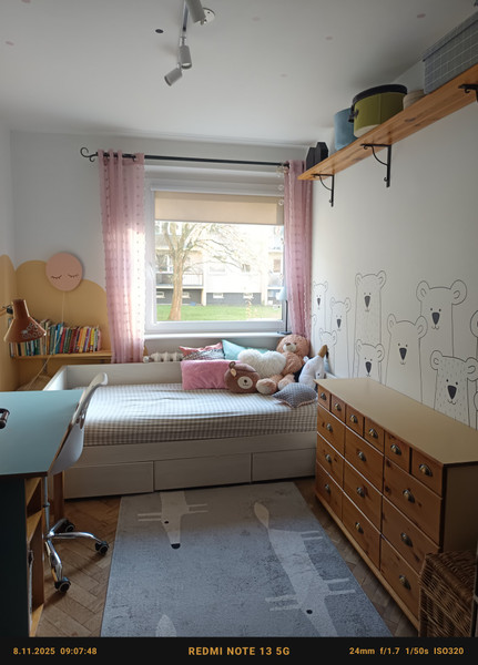 Przyjemne 4-pokojowe mieszkanie na parterze w bloku z wielkiej płyty z odremontowaną fasadą budynku. Klasyczny rozkład pomieszczeń z dużym przedpokojem w centralnej części, reszta pomieszczeń usytuowana dookoła, sypialnia oddzielona małym korytarzykiem, co daje ustronność i miejsce do przechowywania, oddzielna kuchnia, toaleta oddzielona od łazienki. Idealne dla rodziny z dziećmi ze względu na bliskość szkół, przedszkoli, komunikacji miejskiej (PKP 400m, ZKM 200m), sklepów (Biedronka, Lidl, piekarnia). Okolica jest spokojna i przyjemna, sąsiedztwo również, sporo zieleni dookoła, dostępne miejsca parkingowe, plac zabaw blisko. Przyjemny balkon (częściowo zasłonięty drzewem bzu, co tworzy zaciszny kąt latem), do mieszkania przynależy również piwnica. Dobrze się tu mieszka, zapraszam do obejrzenia!