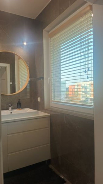 Przestronny, bardzo funkcjonalny apartament wykończony w wysokim standardzie. Na podłogach wysokiej klasy wodoodporne panele Quick Step, zabudowa na wymiar, w kuchni granitowe blaty oraz wysokiej klasy sprzęt AGD. W całym mieszkaniu drewniane żaluzje. Ekspozycja południowo - zachodnia sprawia ze apartament jest idealnie doświetlony naturalnym światłem oraz bardzo ciepły.