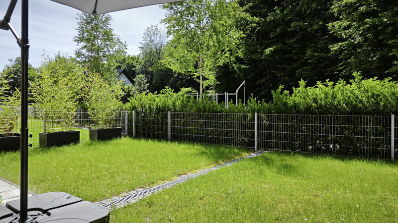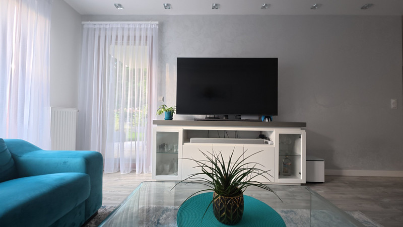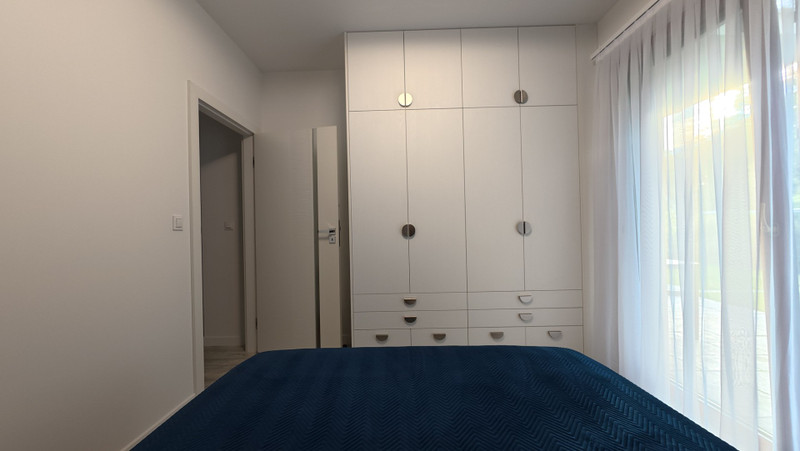 W mieszkaniu do wszystkich pomieszczeń zainstalowane są białe drzwi premium marki Porta (fornir) z ukrytymi zawiasami oraz dekoracyjną strukturą i szkłem. Na podłodze w pokojach panele podłogowe. W salonie, przedpokoju, łazience i ubikacji sufit podwieszany. Wszystkie pokoje mają dostęp do ogrodu, a na drzwiach balkonowych we wszystkich pokojach zainstalowane są moskitiery rolowane na wymiar. Dzięki ekspozycji zachodniej w mieszkaniu jest dużo naturalnego światła w drugiej części dnia.
