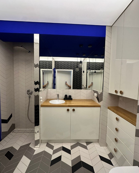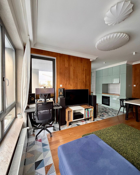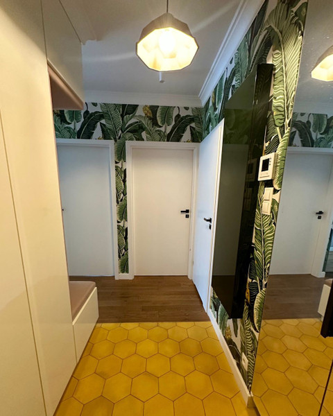 Układ i wykończenie apartamentu został wykonany w oparciu o projekt architektoniczny. Materiały oraz kolorystyka sprawiają, że wnętrza są przytulne i relaksujące. Natura, harmonia i funkcjonalność łączą się tworząc bardzo przyjemne miejsce do życia.
