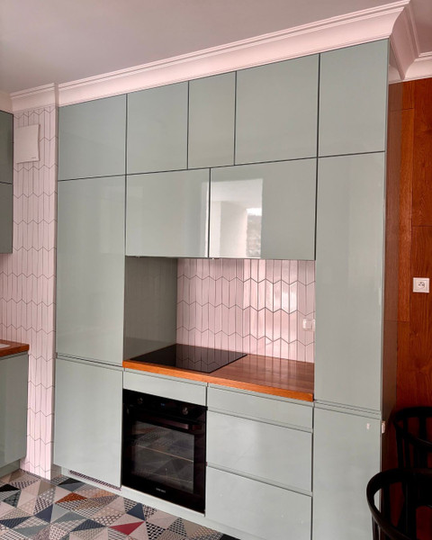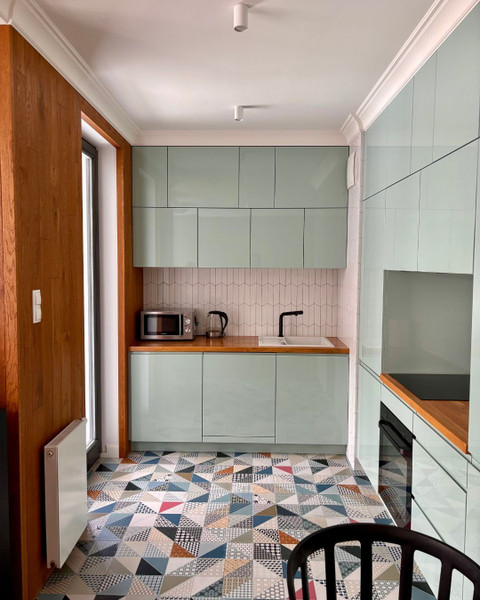 Jednym z celów projektu była maksymalizacja przestrzeni do przechowywania - we wnętrzach znajdują się pojemne szafy. Wraz z zabudową kuchenną zostały wykonane na zamówienie.