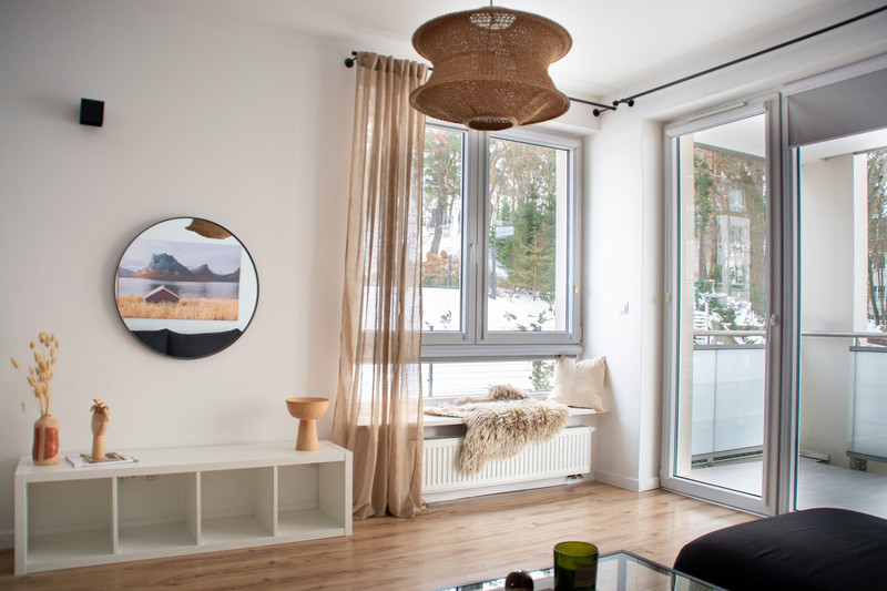 Doskonałe mieszkanie dla osób ceniących sobie bliskość natury, lasu i morza, spokoju, a przy tym nie rezygnując z udogodnień miasta. Mieszkanie urządzone w skandynawskim stylu z dużym balkonem z widokiem na wewnętrzny park znajdujący się na osiedlu.