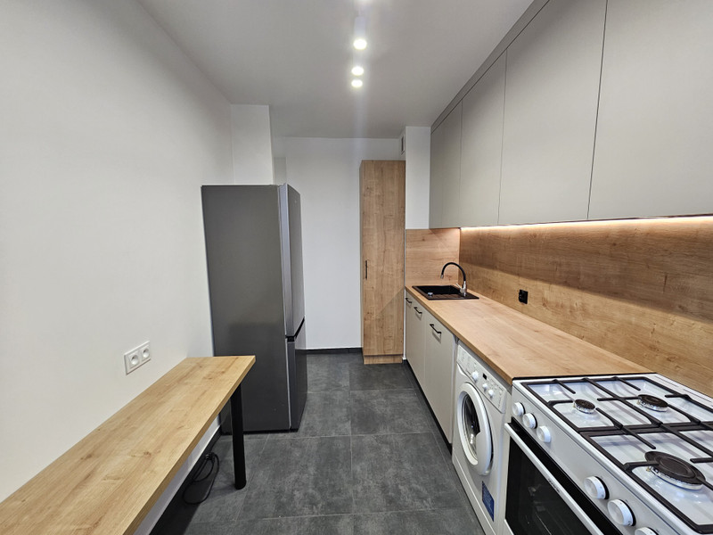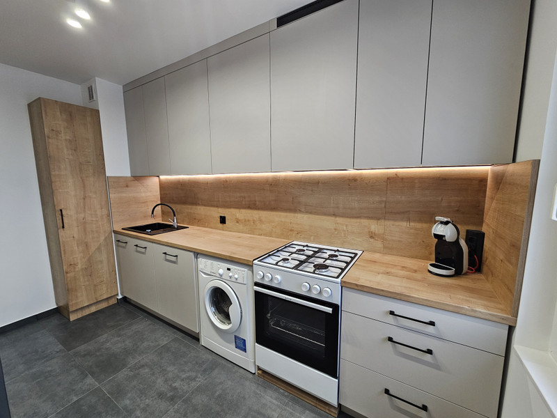 • Kuchnia (8 m²) - oddzielna, widna, z nową zabudową wykonaną przez stolarza pod wymiar. Posiadająca wszystkie niezbędne sprzęty ( lodównka, zmywarka 60cm, okap, kuchenka gazowa oraz pralka).