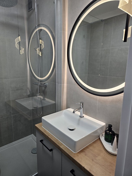• Łazienka i oddzielne WC: Wykończone w wysokim standardzie (meble na wymiar).